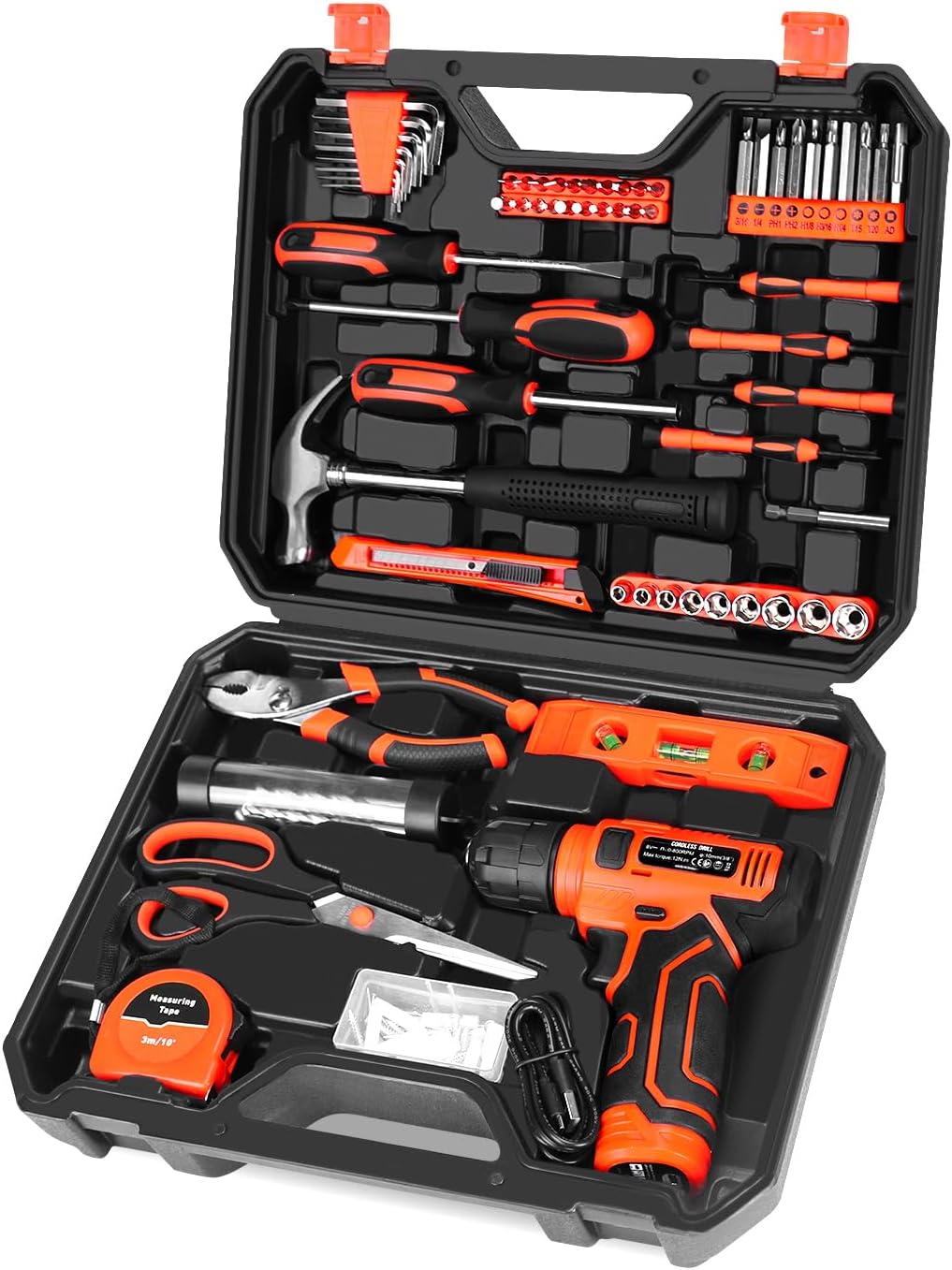Introducing the 139-Piece Tool Set with an 8V Cordless Drill Driver, housed in a convenient ToolBox Storage Case. Designed for home repairs, handyman tasks, and DIY projects, this comprehensive kit combines high-quality materials with functionality to deliver exceptional performance. With its versatile application, this tool set is a must-have for both beginners and professionals looking to efficiently tackle various tasks.